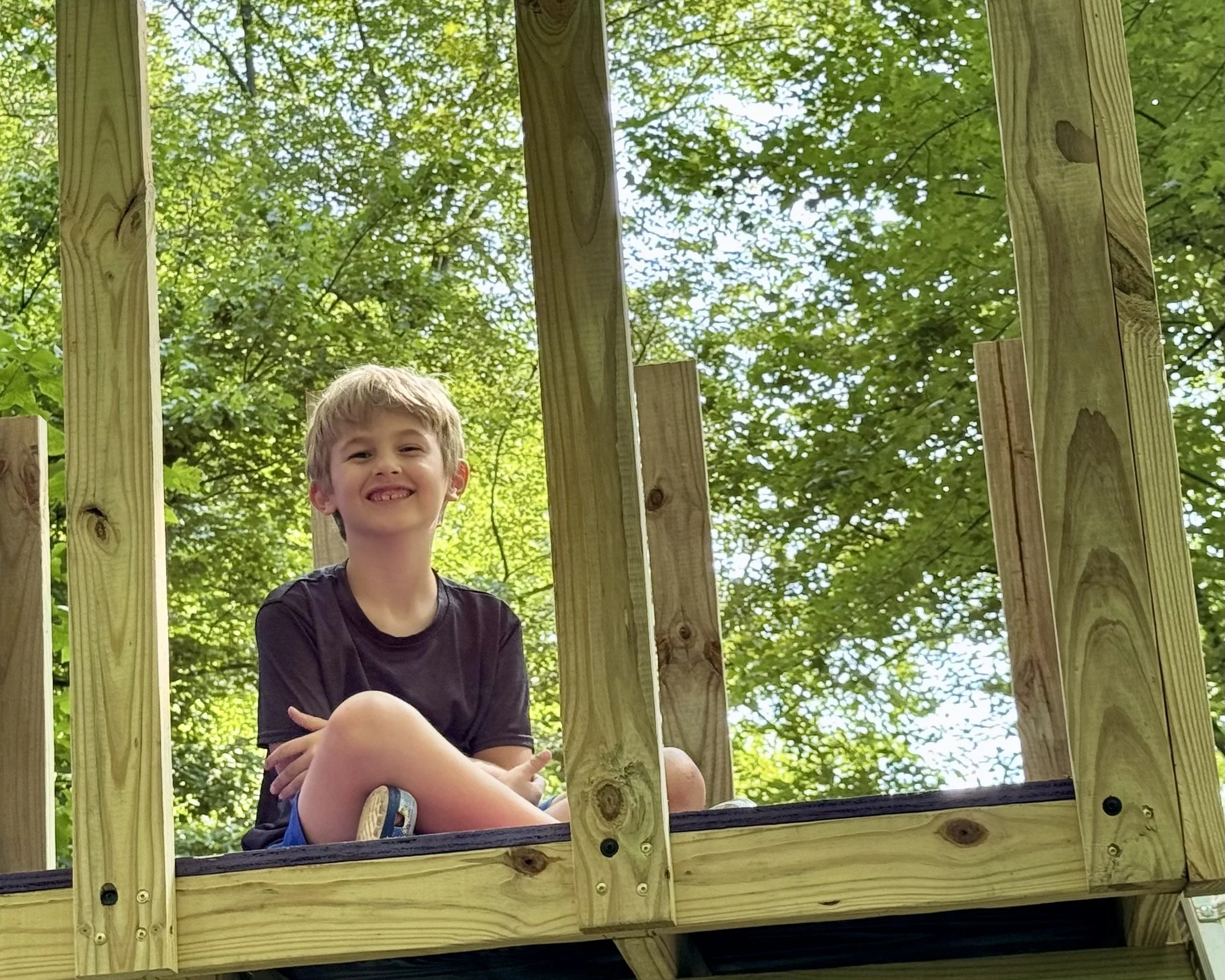 Grandson, Jack in treehouse designed by Jack and Ashley