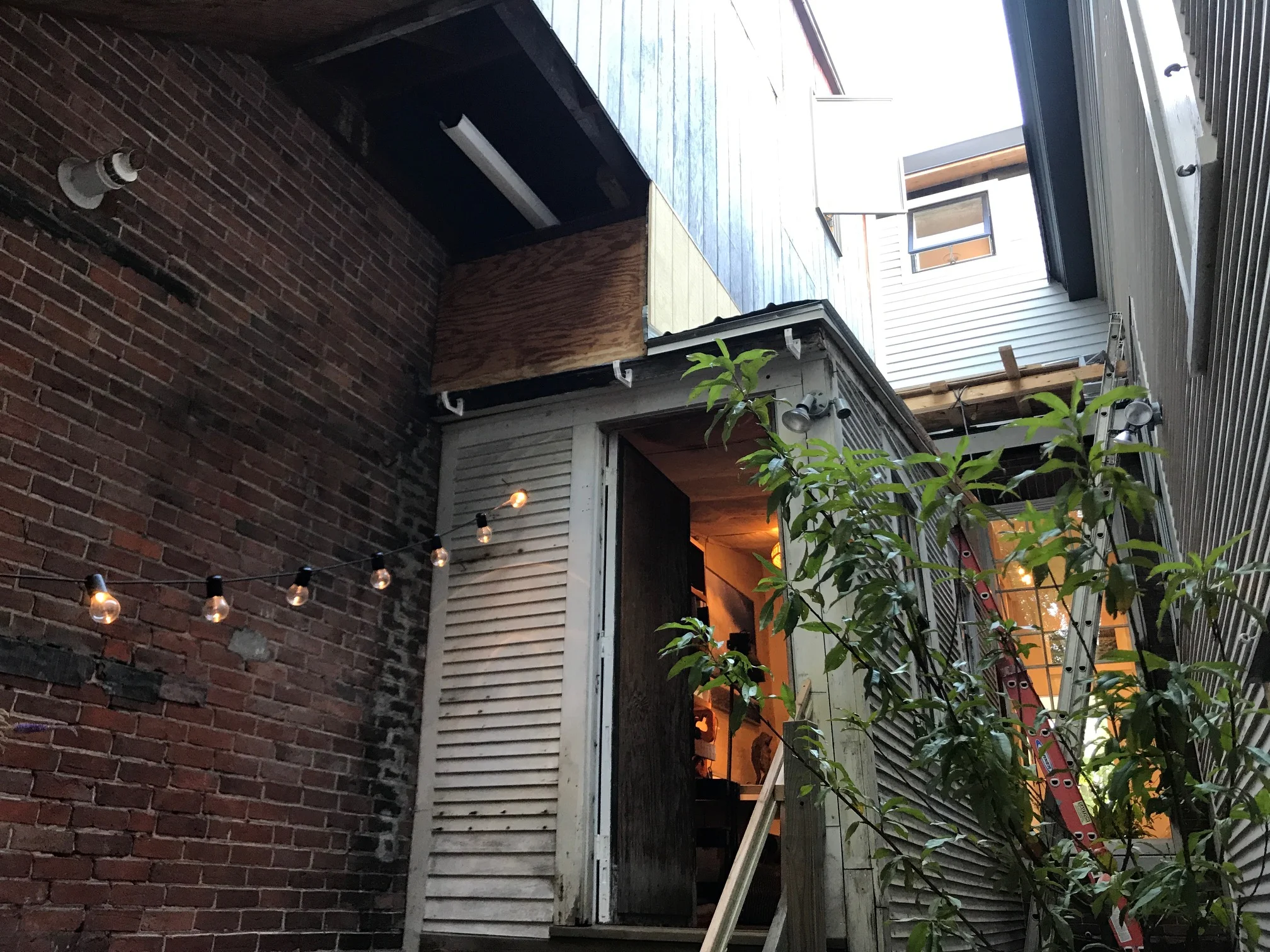 One evening, Anni suggested that we gather for a dinner after an art opening in her tiny rectangle of open ground behind one of the galleries. Anni has created a magical place there, where you can peek up to see the stars while surrounded by buildings, where there are long narrow picnic tables and benches and twinkling lights. All guest brought contributions…smoked chicken, spinach and strawberry salad, bread for the French bakery next door, fruit pies. We enjoyed a most delicious and celebratory meal. No one wanted the evening to end.